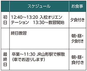 寒河江市近隣内居住の方は入校をご遠慮ください。(県内に実家のある方は合宿不可となります。)